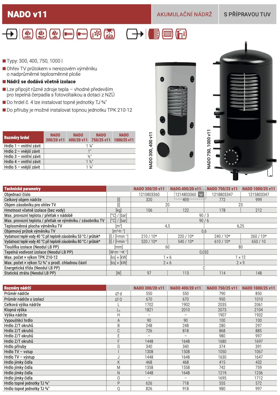 DRAŽICE NADO 400/20 v11 akumulační nádoba 405l, výměník pro TV 20l, s izolací