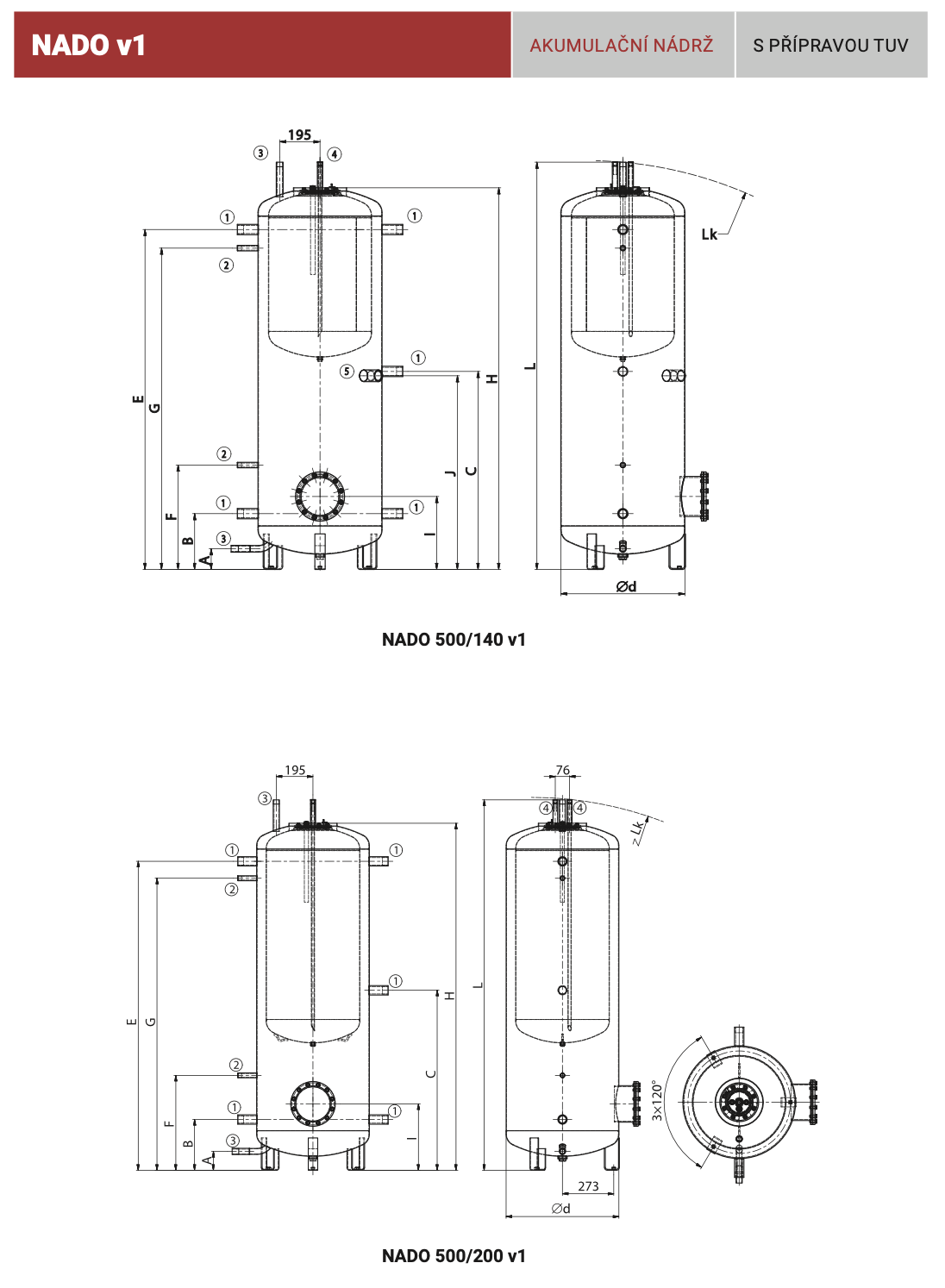 Akumulační nádrže NADO jsou vyráběny s přírubou o rozteči šroubů 210 mm pro montáž přírubové jednotky TPK. Ve standardním provedení je příruba zaslepená. Nádrž obsahuje vnitřní smaltovaný zásobník o objemu 140, 200, 250 a 300 litrů. Vhodná jako zásobník k topným systémům s kotli na tuhá paliva