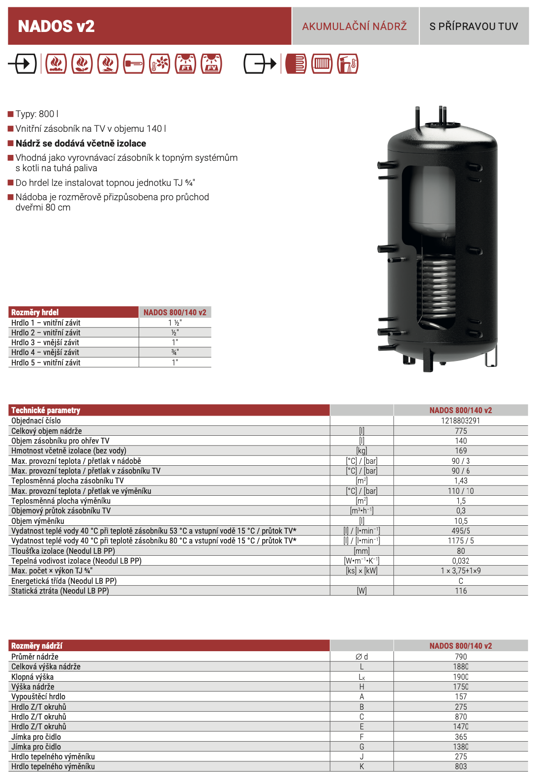 Dražice NADOS 800/140 v2 Akumulační nádrž, s izolací