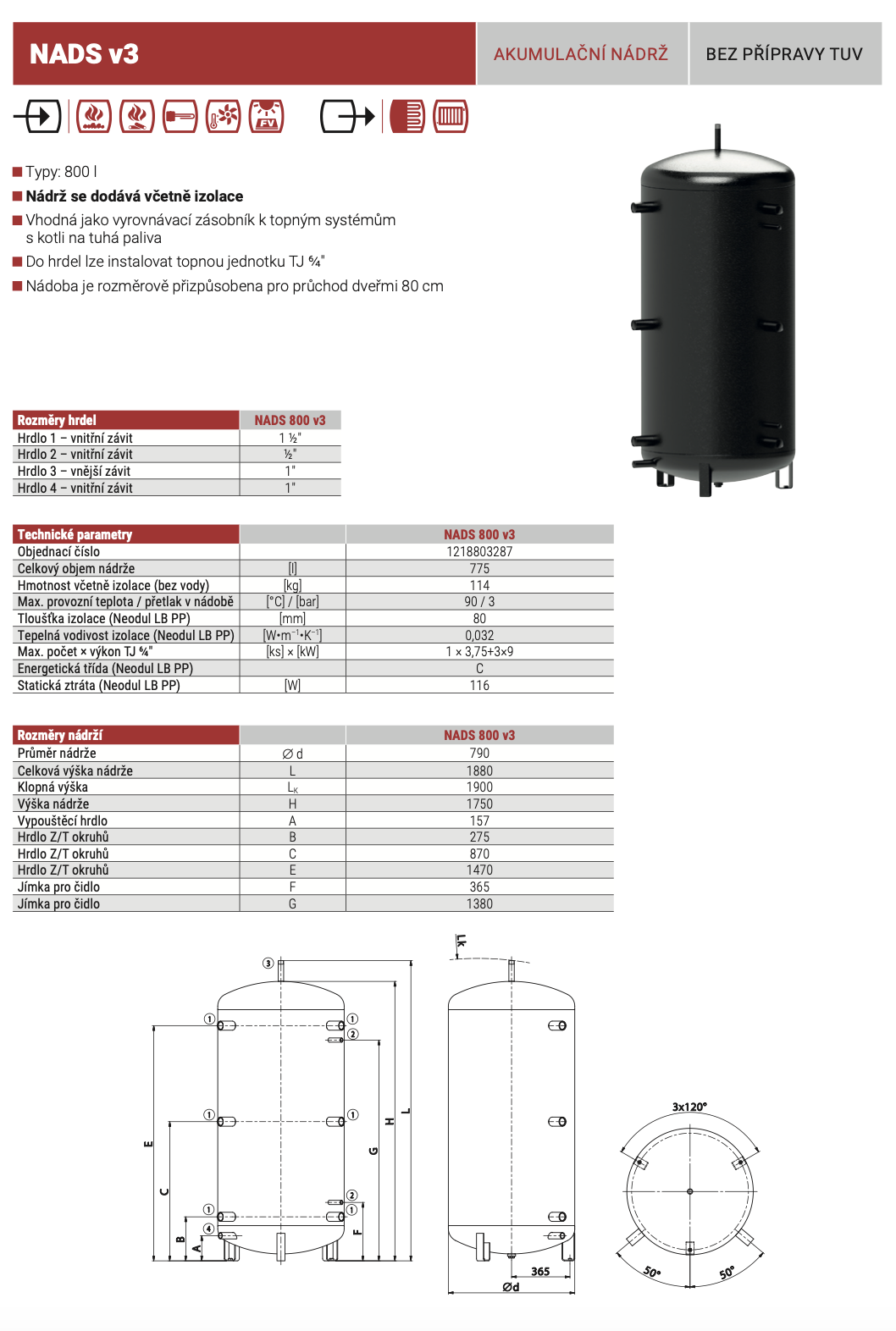Dražice NADS 800 v3 Akumulační nádrž s izolací