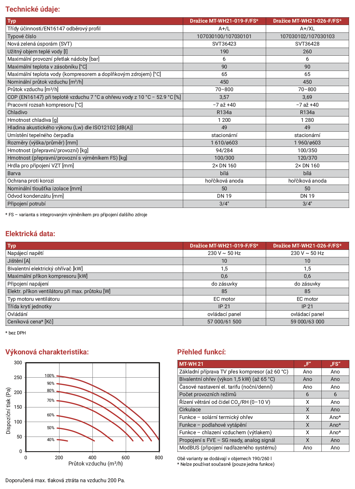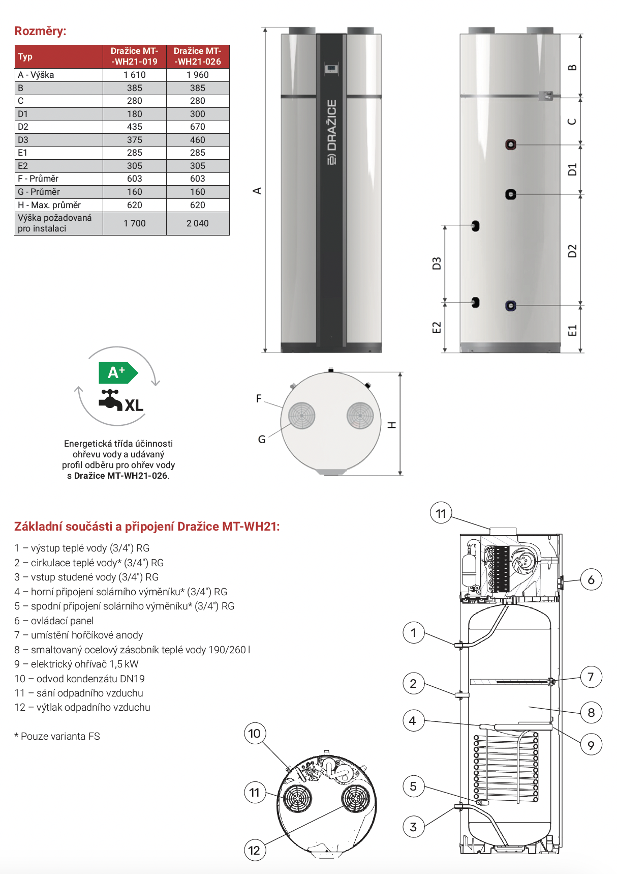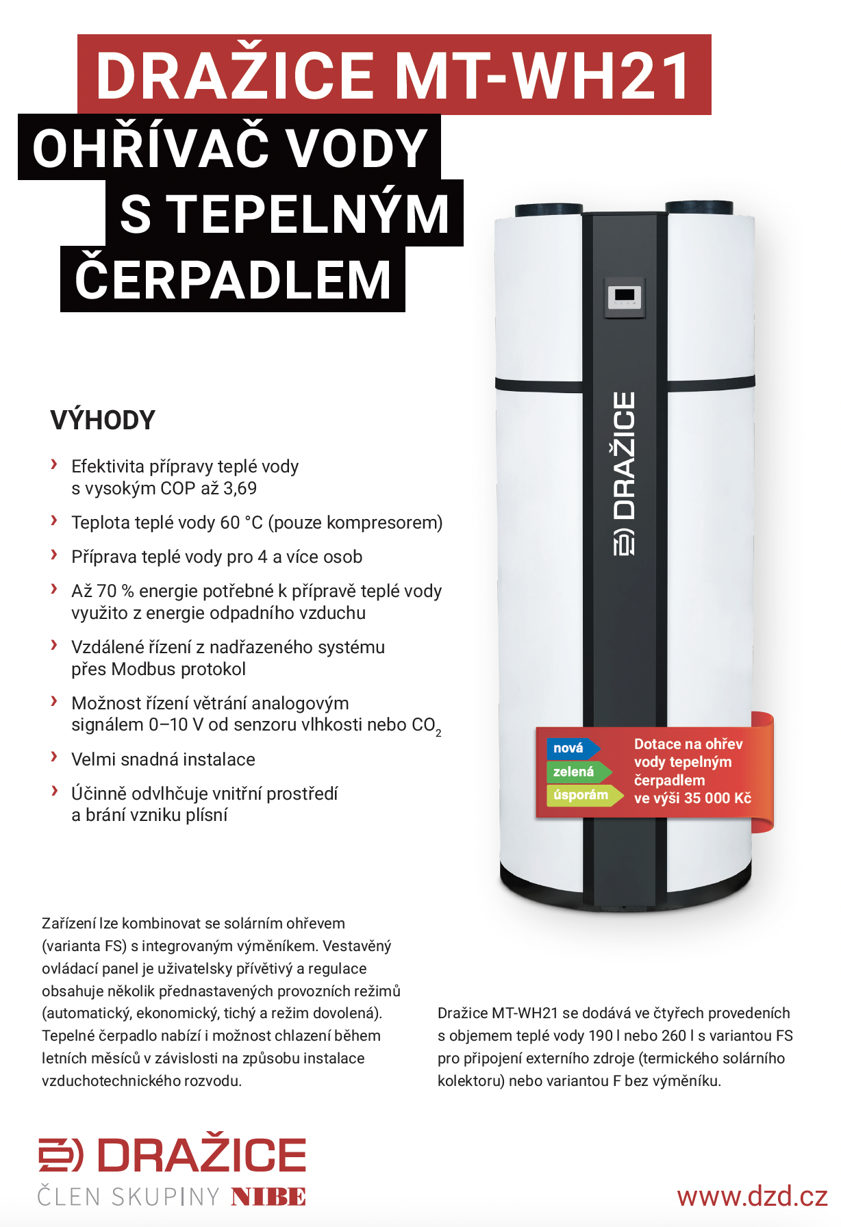 DRAŽICE ohřívač vody s tepelným čerpadlem MT-WH 21-019-F, objem zásobníku 190l