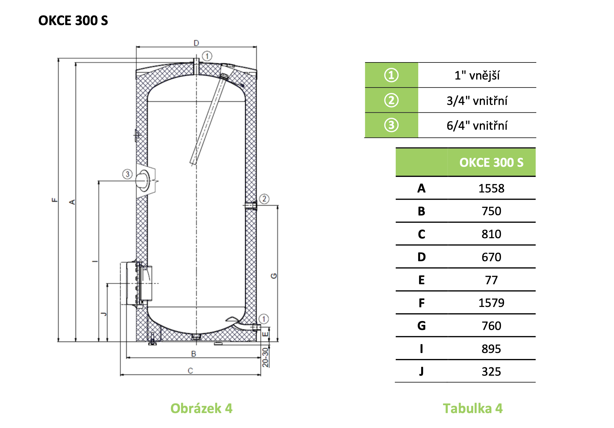 - Ohřívač 300 l má 60 mm tvrdé polyuretanové izolace s plastovým pláštěm