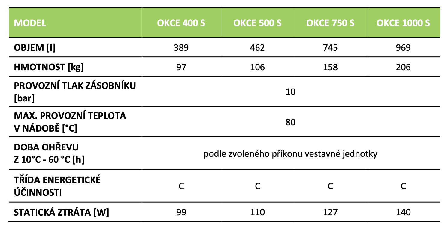 Stacionární ohřívač vody umožňující instalaci topných těles, dostupný též ve velkokapacitním provedení s objemem 1000 litrů.