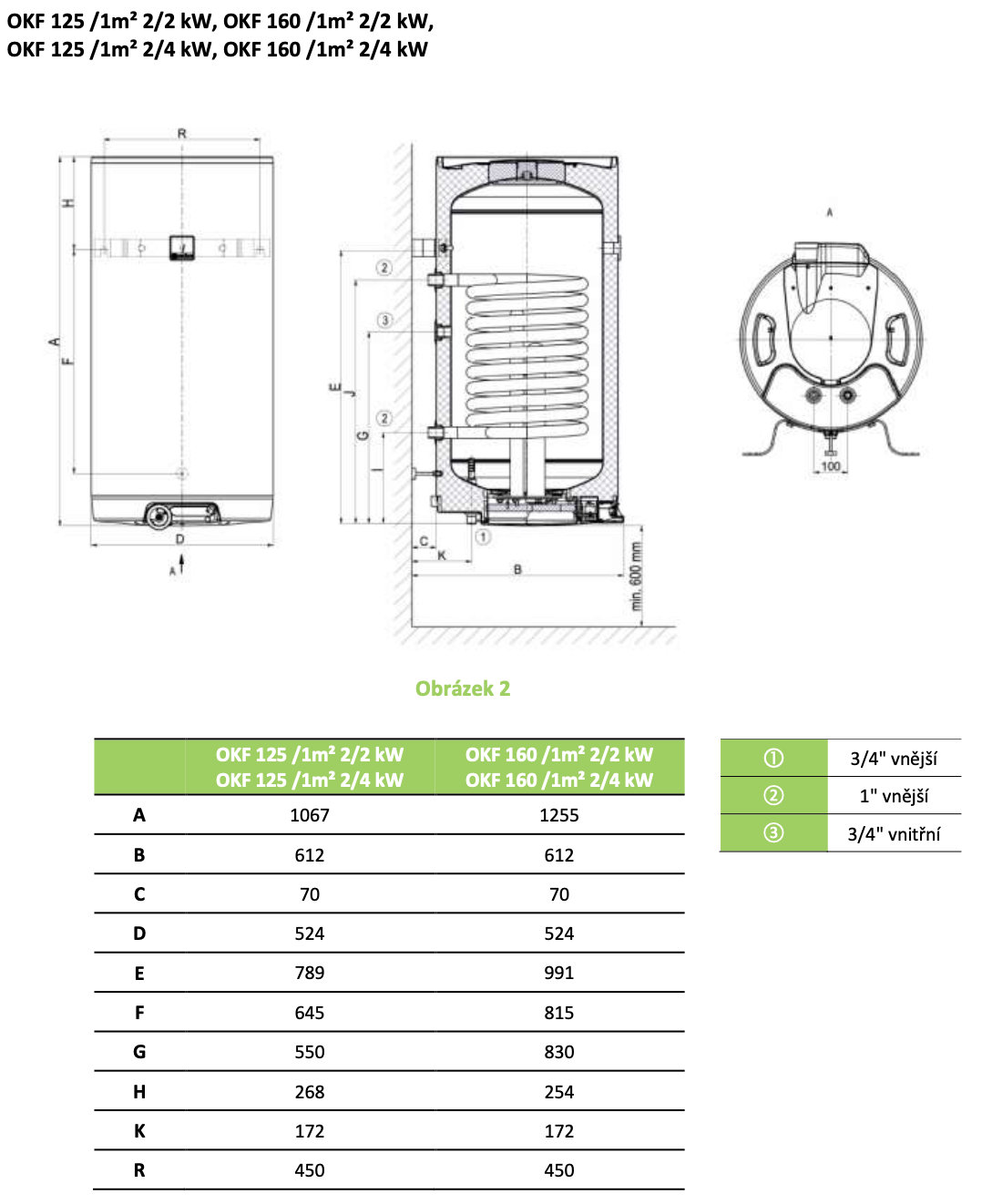 Dražice OKF 160/1m2 2/4 kW ohřívač vody závěsný, kombinovaný