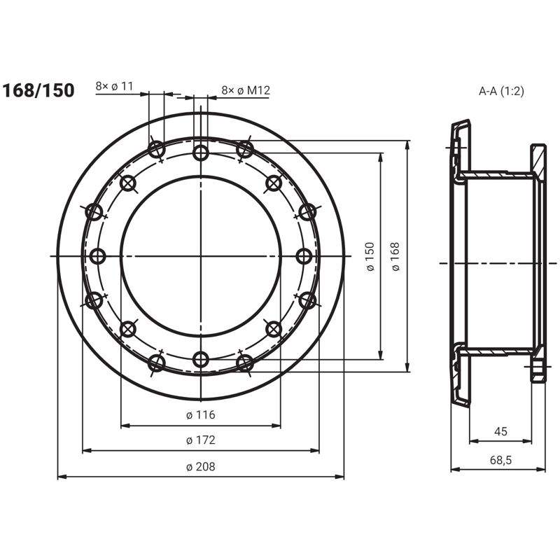 • redukční příruba 168/150 mm pro elektrické topné jednotky TPJ (kromě TPJ 150-8/15kW), které lze tak pomocí redukční příruby montovat do ohřívačů OKC 160–200 BP, OKC 200 – 250 HP.