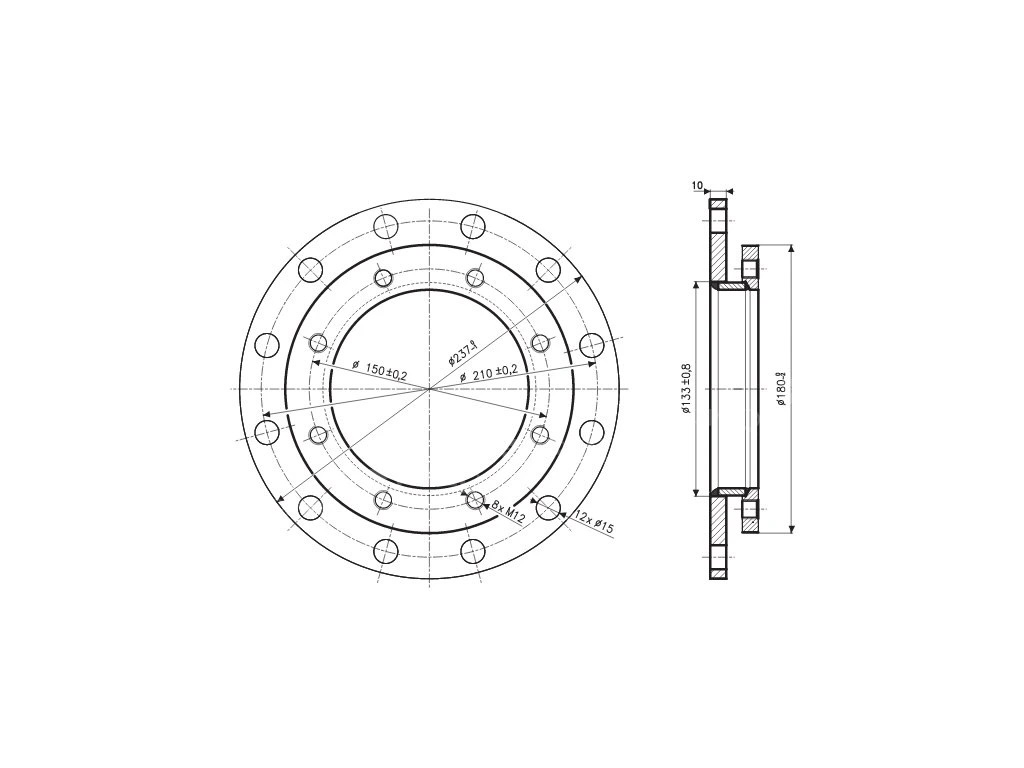 • redukční příruba 210/150 mm pro elektrické topné jednotky TPJ, RDU, RDW, které lze tak pomocí redukční příruby montovat do ohřívače OKCE 160–500 S, OKC 300–500 BP.