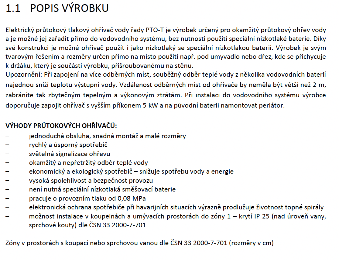 - Jednoduchá a rychlá instalace bez nutnosti seřizování ohřívače
