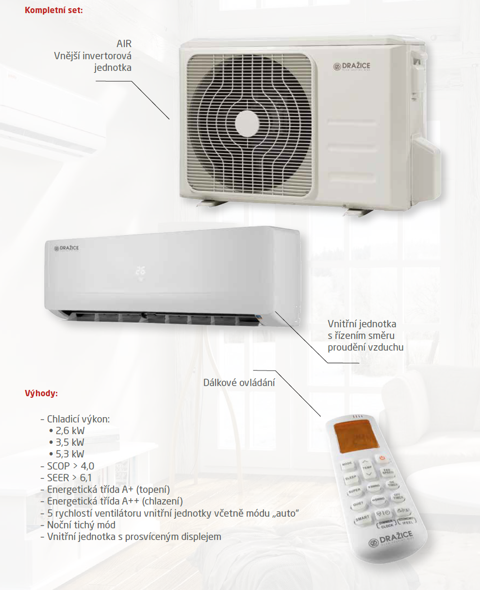 DRAŽICE SPLIT AIR26 klimatizace 2,6 kW venkovní+vnitřní jednotka, nástěnná