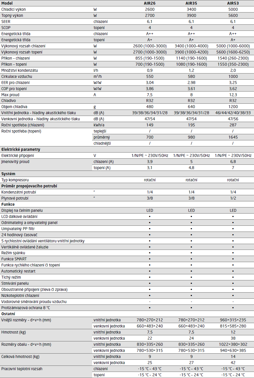 | Typ klimatizace: | Set venkovní a vnitřní jednotky |