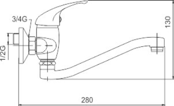 Dřezová nástěnná baterie s lékařskou pákou s roztečí 100 mm a otočným ramenem s délkou 255 mm.