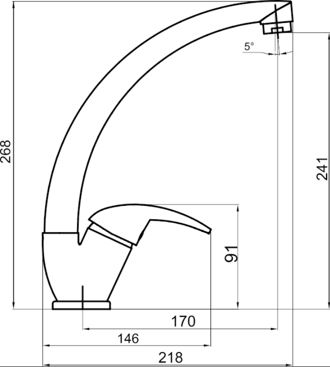 Stojánková dřezová baterie s otočným ramenem s délkou 220 mm.
