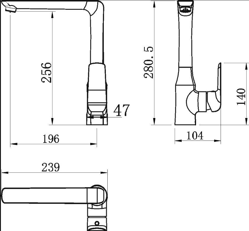 Stojánková dřezová baterie s otočným ramenem a délkou až 220 mm.