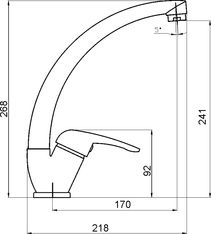 Stojánková dřezová baterie s otočným ramenem a délkou 220mm.