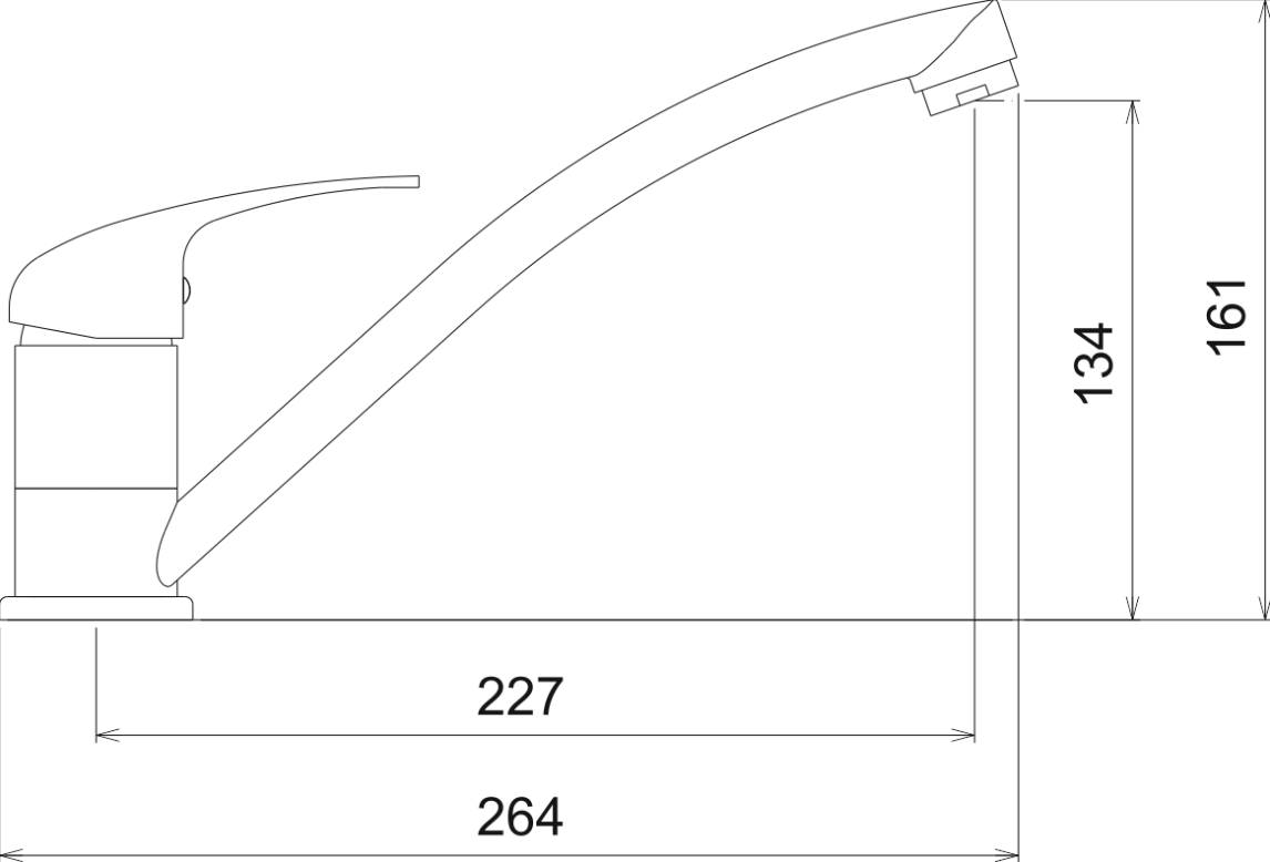 Stojánková dřezová baterie s otočným ramenem a délkou 200mm.