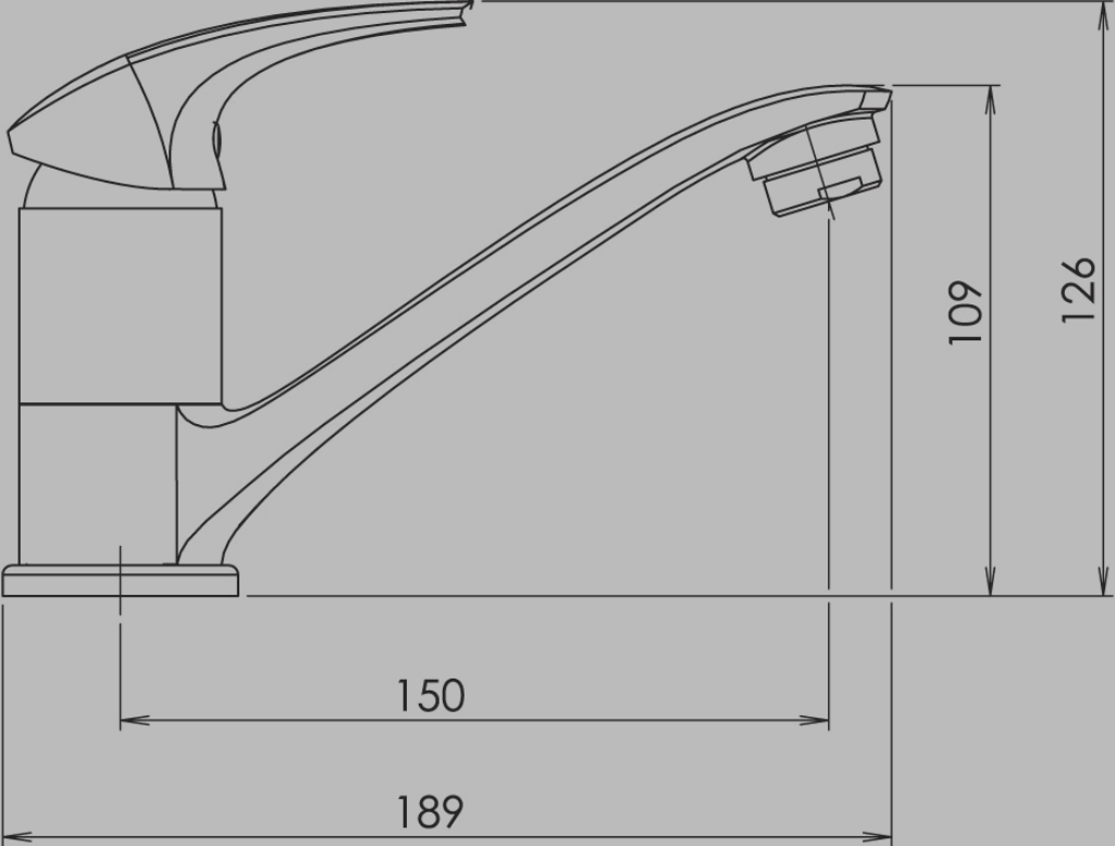 Stojánková dřezová baterie s otočným ramenem a délkou 150 mm.