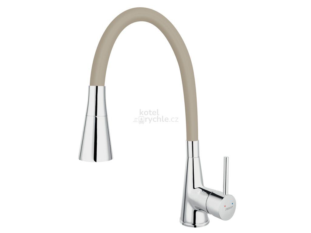 Praktická a moderní dřezová baterie s elastickým ramenem a sprškou bude vaším oblíbeným pomocníkem v kuchyni.