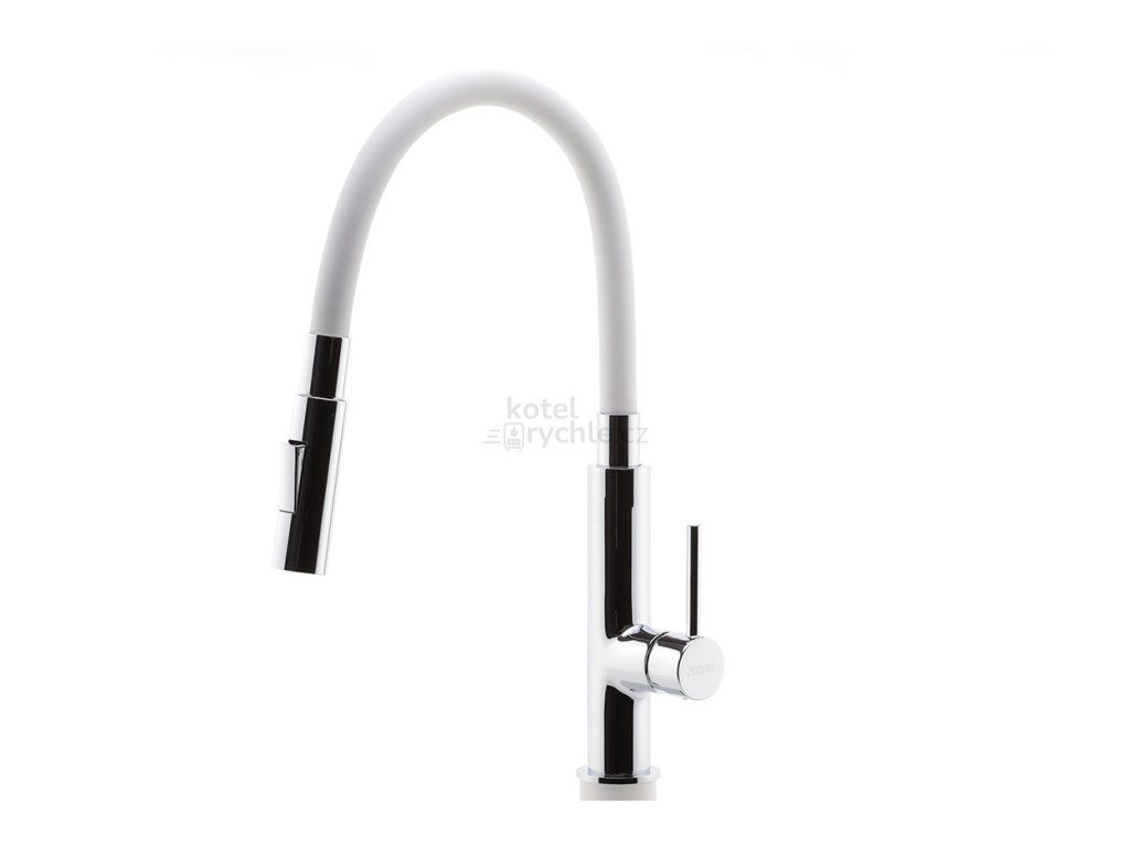 Dřezová stojánková baterie s bílým ramenem a sprškou