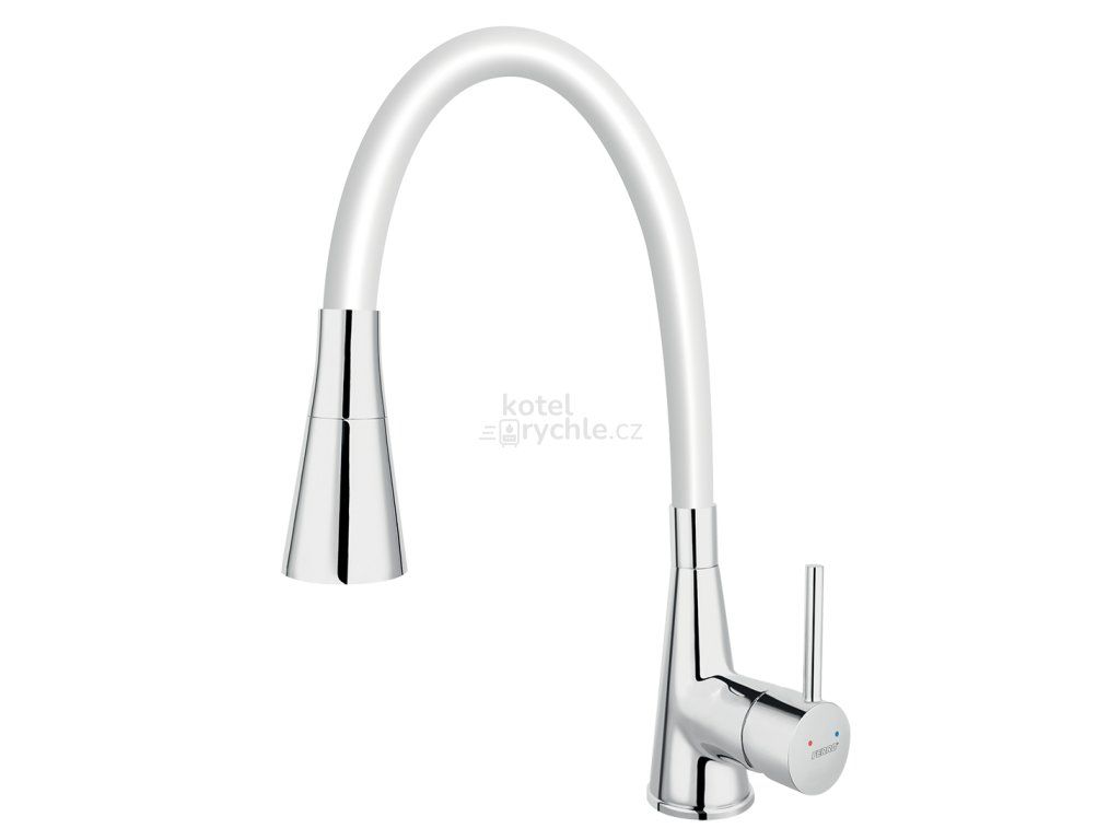 Dřezová stojánková baterie s bílým ramenem a sprškou