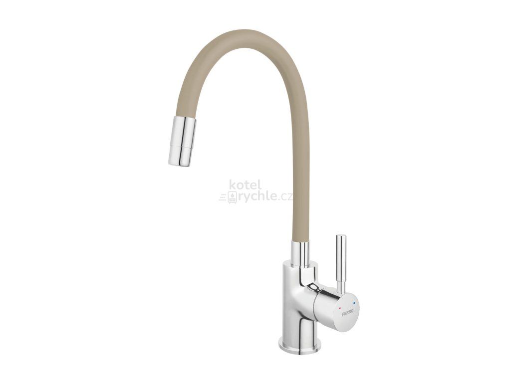 Dřezová stojánková baterie s elastickým ramenem, béžová-chro