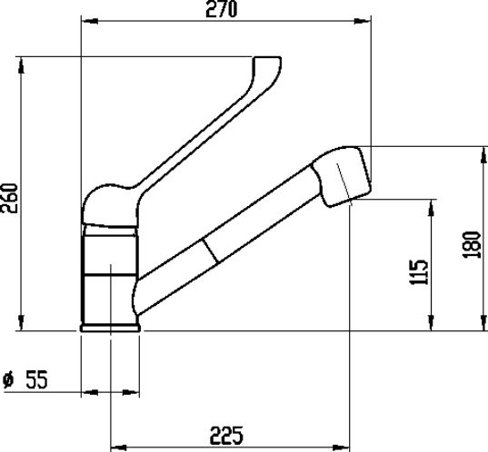 Stojánková teleskopická dřezová baterie s lékařskou pákou s délkou hadice 150 cm a sprškou.