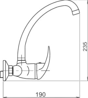 Dřezová nástěnná baterie s roztečí 150 mm s horním vývodem a otočným trubkovým ramenem s délkou 160 mm.