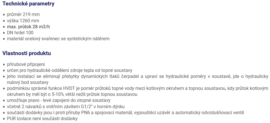 ETL-EKOTHERM HVDT hydraulický vyrovnávač dynamických tlaků 28 m3/hod, přírubové připojení, DN100/6
