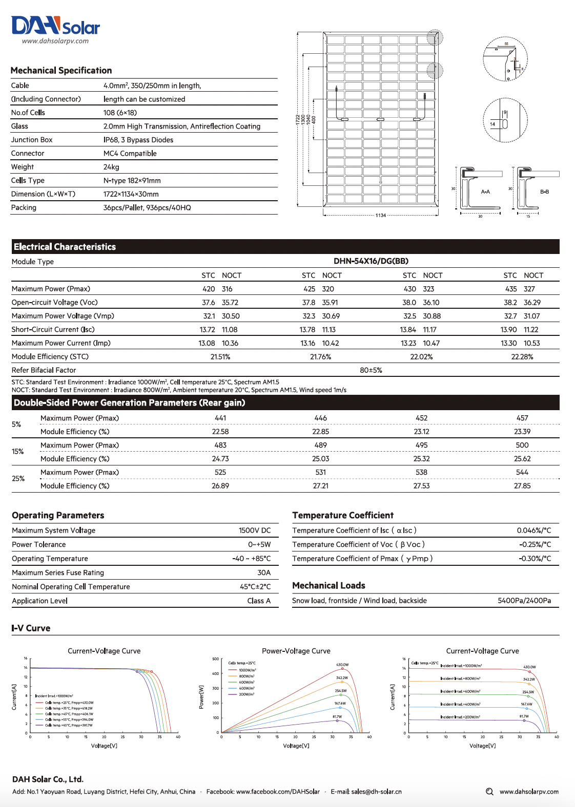 Fotovoltaický panel Dah Solar DHN-54X16-DG(BB) 430 430W