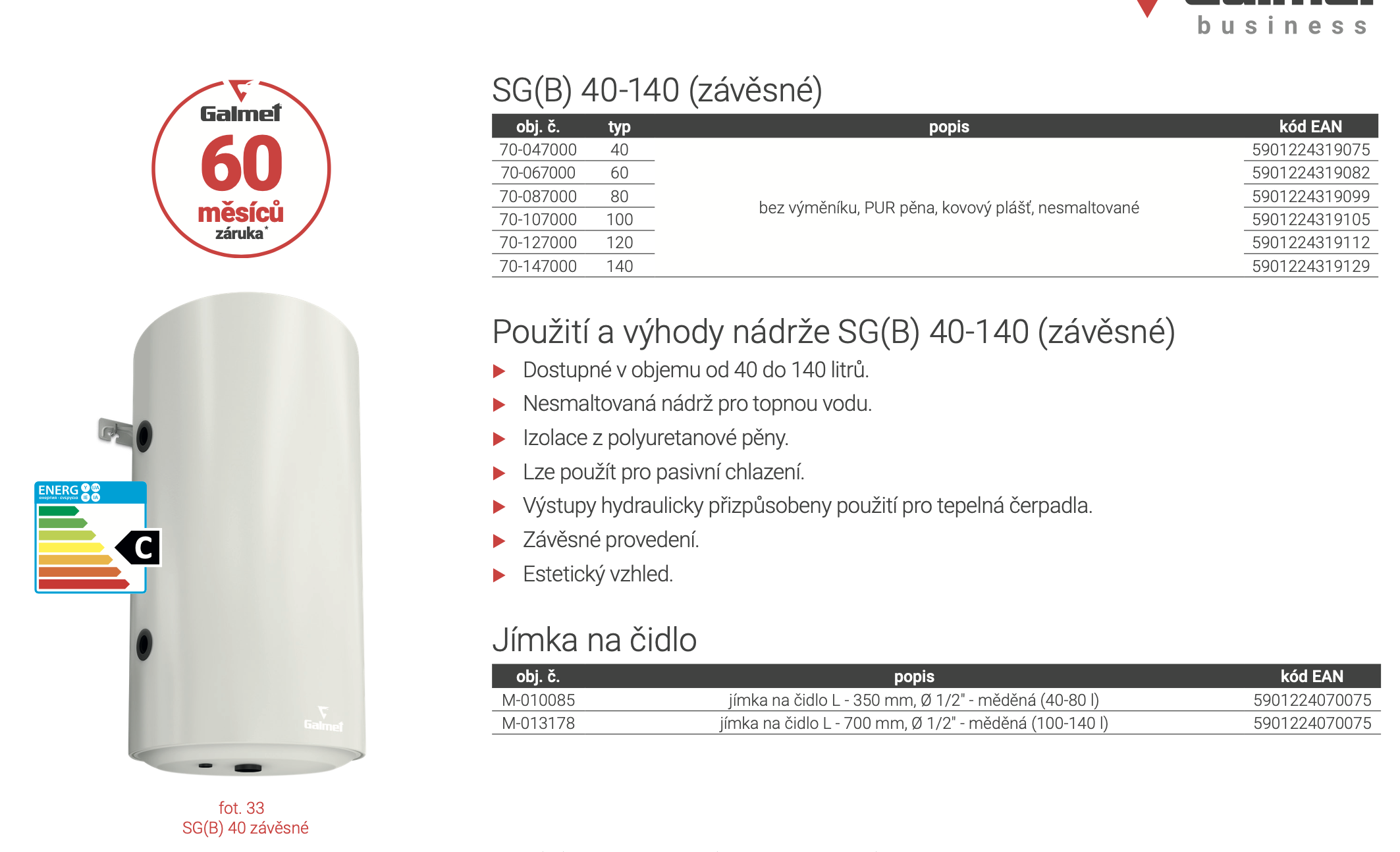 GALMET SG(B)120 akumulační nádoba 118l, s izolací, závěsná