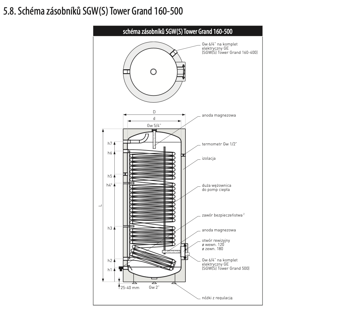 GALMET SGW(S) TOWER GRAND nepřímotopný zásobník 300l, 1 výměník, stacionární, pro TČ