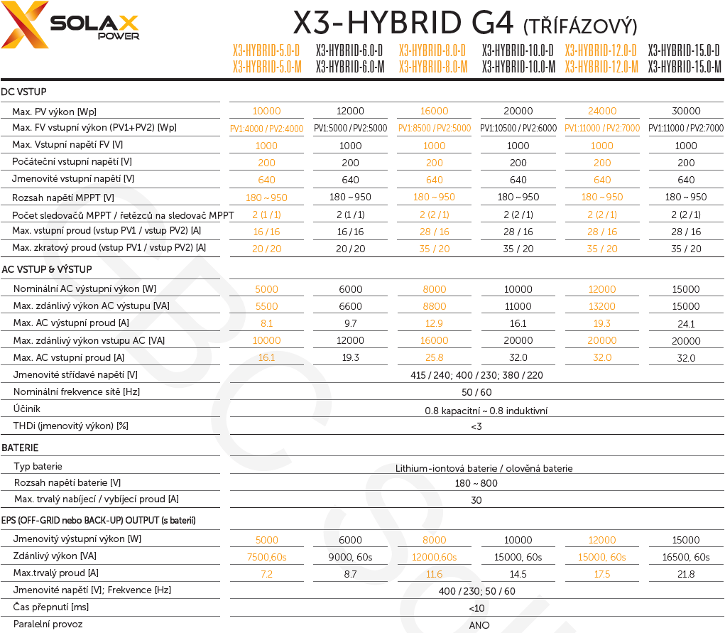 GBC SOLINO SOLAX X3-HYBRID-10.0-D hybridní střídač 2000Wp, 3-fázový