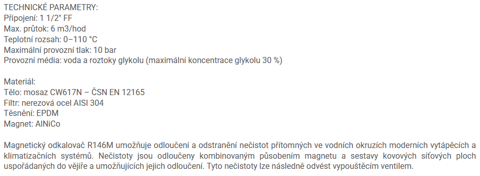 | Jmenovitý tlak filtru (PN): | 10 bar |