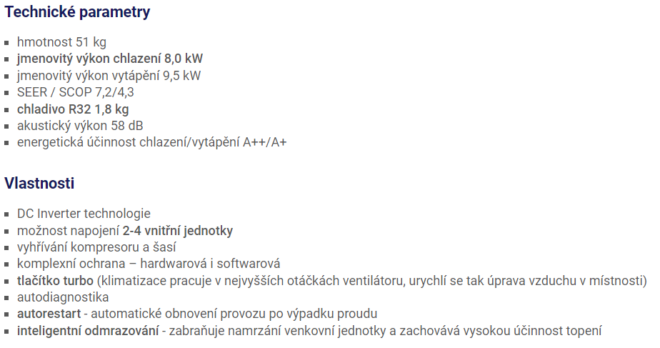 | Typ klimatizace: | jednotka venkovní |