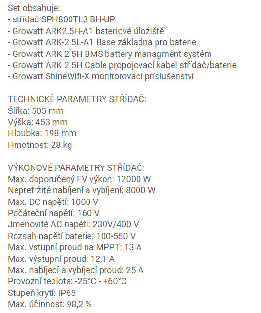 GROWATT FVE SET SPH 8000TL3 BH-UP hybridní střídač 8000W