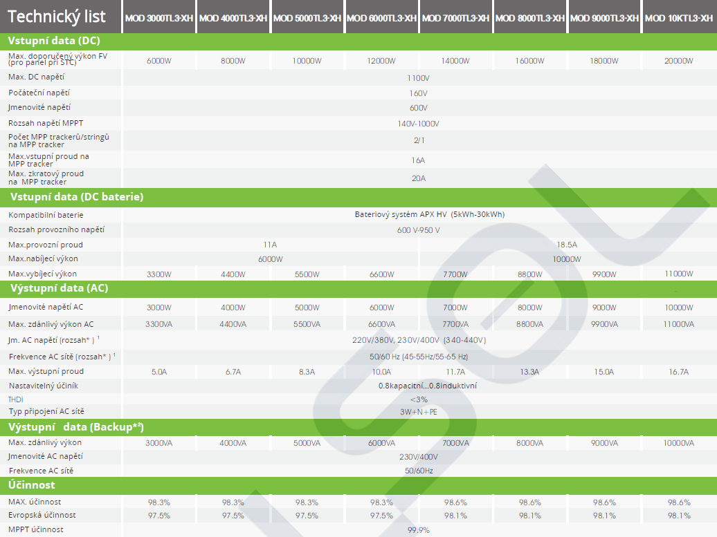 GROWATT MOD 10KTL3-XH BP hybridní střídač 10kW, 3fázový