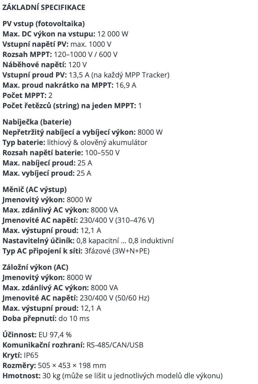 GROWATT SPH 8000TL3 BH-UP hybridní střídač 8000W, 3fázový
