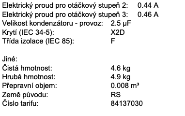 - Motor čerpadla je 1-fázový motor - není nutná žádná přídavná motorová ochrana.