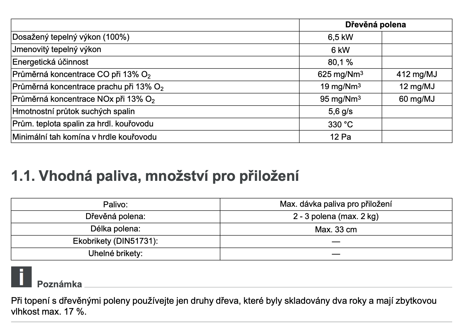 | Použitelné palivo: | Dřevo, dřevěné brikety |