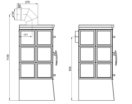 Výkon lze regulovat v rozpětí 2,6 – 8,4 kW a kamny můžete vytápět prostor až 144 m3. Napojení na kouřovod je možné zeshora i zezadu.