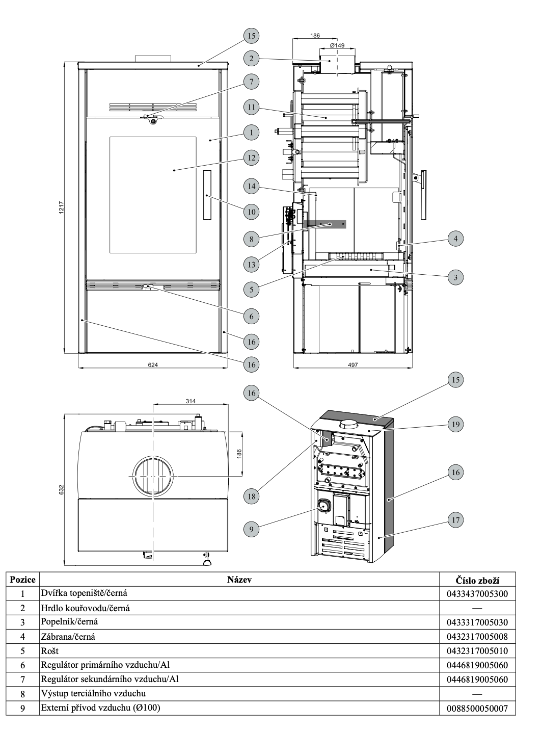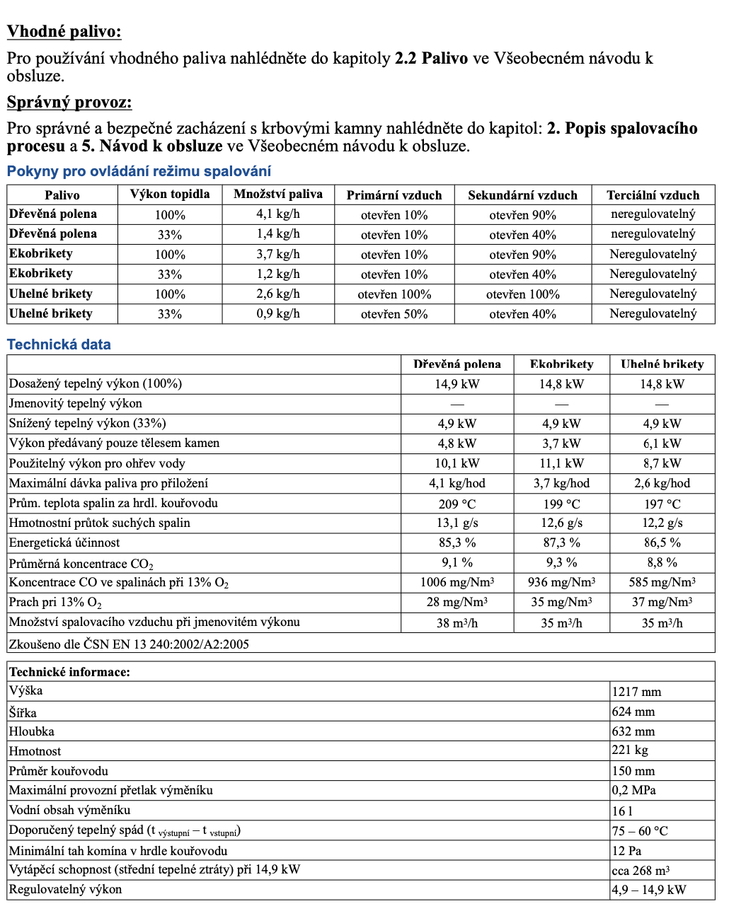| Jmenovitý výkon kamen: | 14,9 kW |