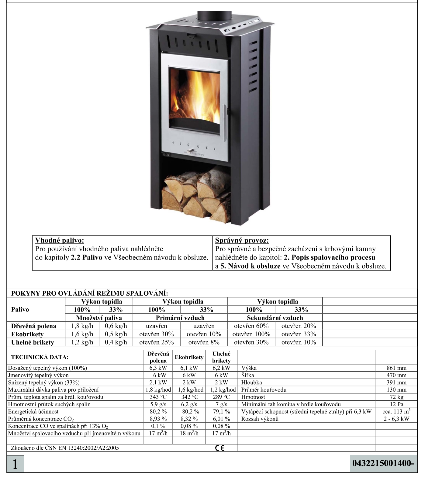 | Jmenovitý výkon kamen: | 2-6,3 kW |