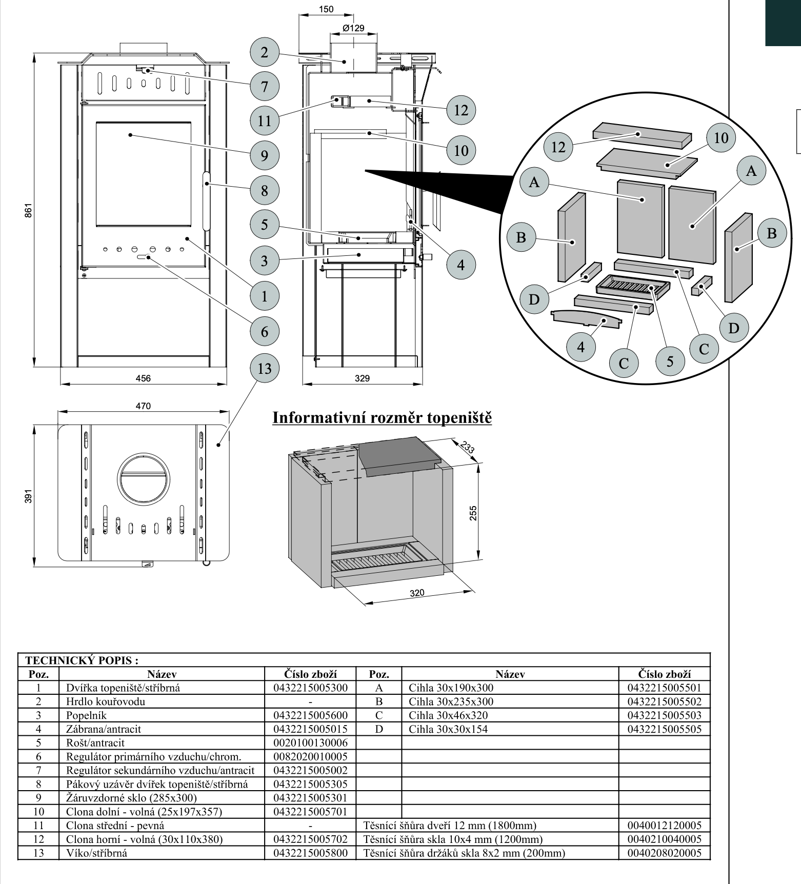 | Palivo: | dřevo, ekobrikety, uhelné brikety |