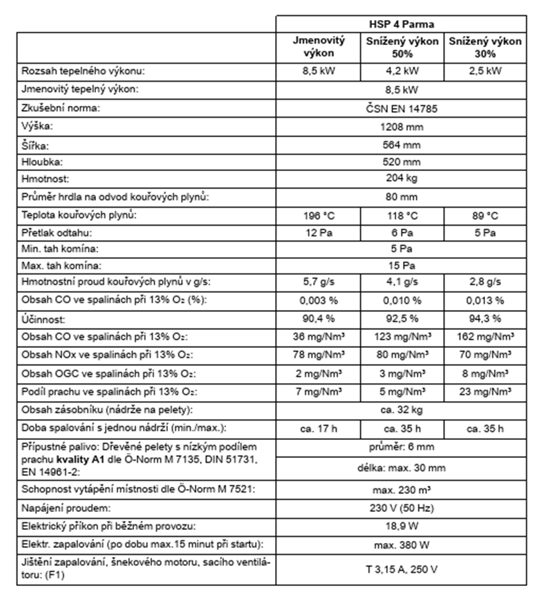 | Jmenovitý výkon kamen: | 8,5 kW |