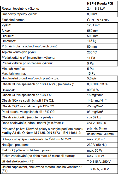- regulovatelný výkon: 2,4 - 8,3 kW