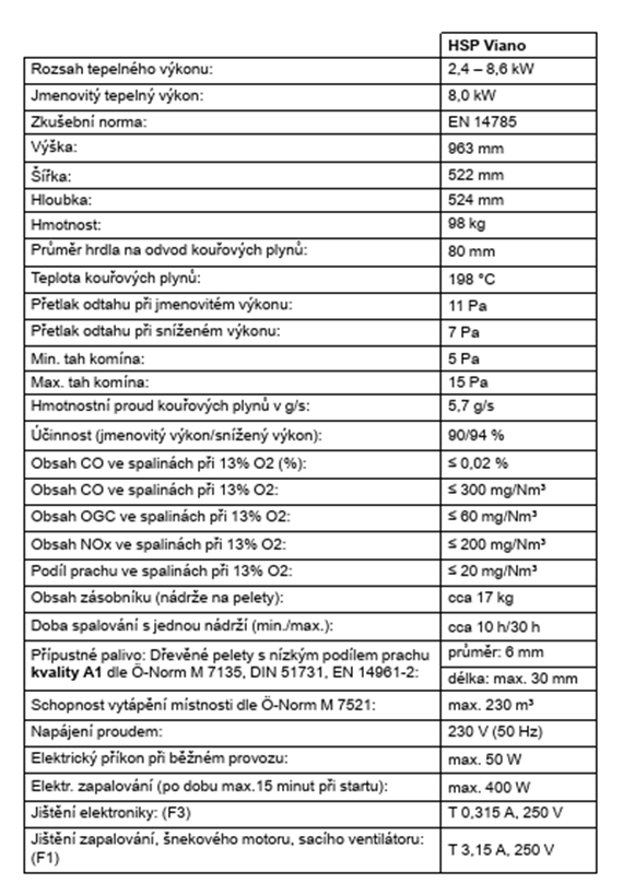 | Jmenovitý výkon kamen: | 8 kW |