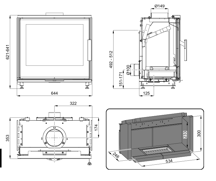 HAAS+SOHN LEVI krbová stavebnice s krbovou vložkou LEVI , 4,0-8,2 kW, strukturovaný dekor horizontální