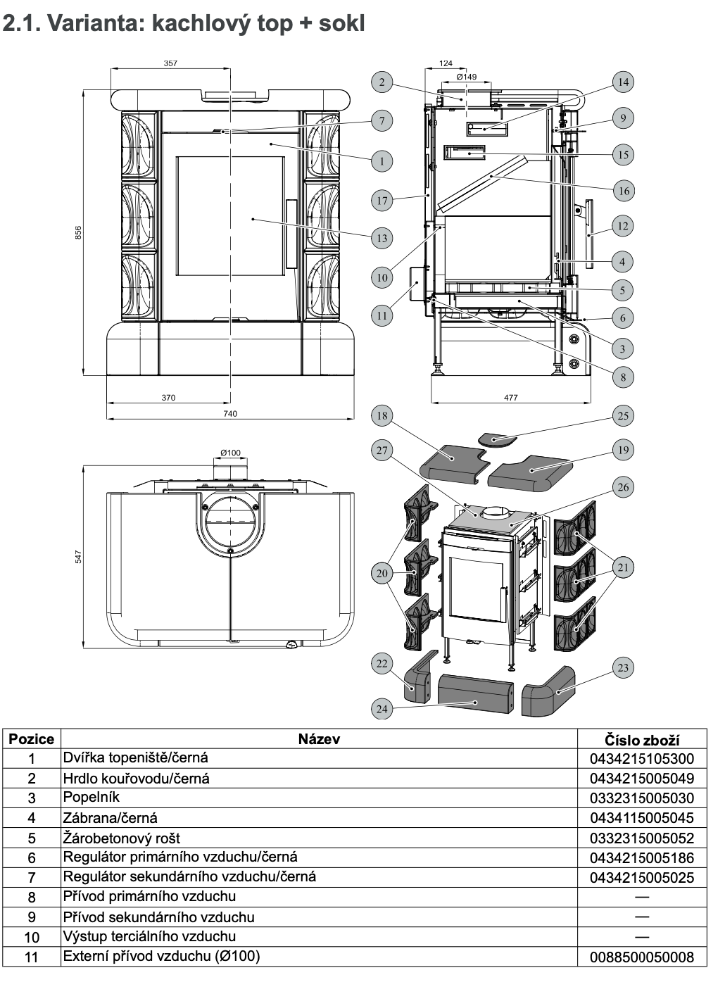 | Vývod kouřovodu: | vrchní, zadní - 150 mm |