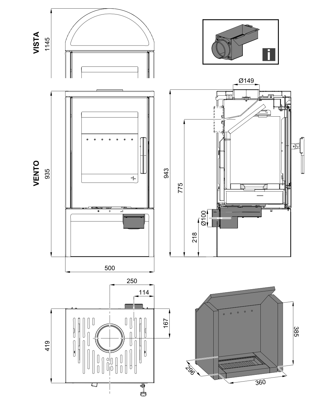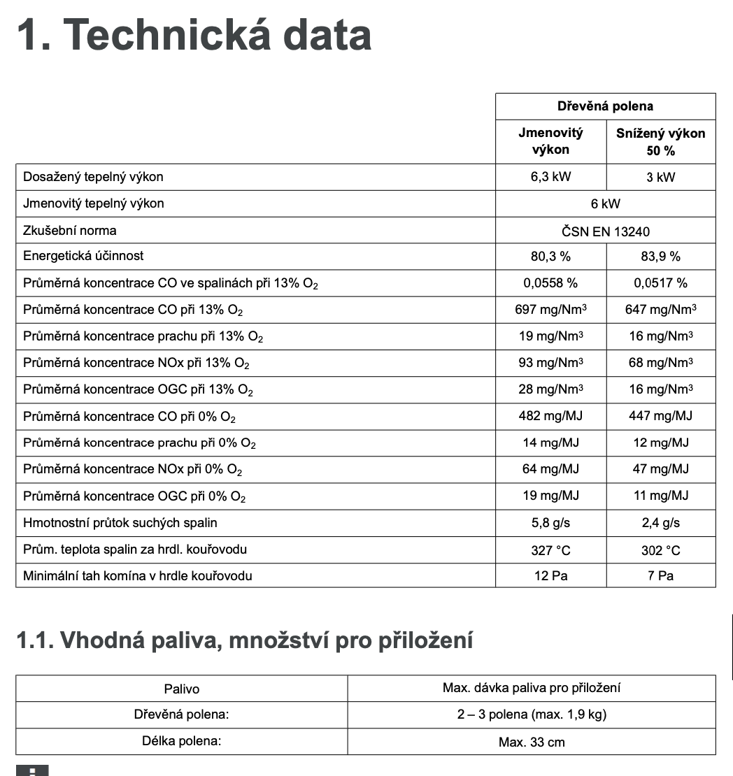 | Palivo: | dřevo, ekobrikety, uhelné brikety |