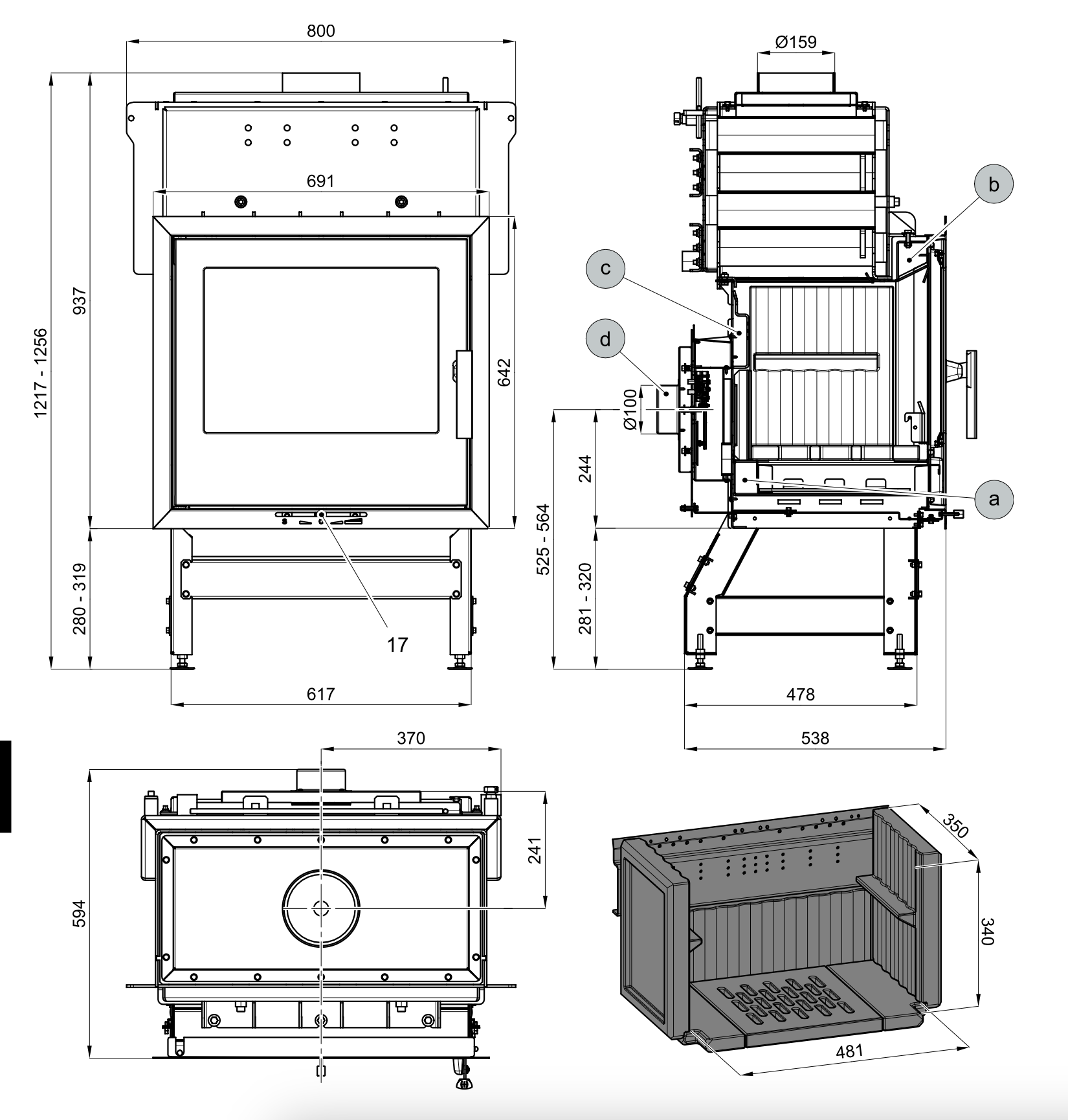 HAAS+SOHN VESUVIO II/10/1S krbová vložka s výměníkem, 15,6kW, černá/litinová dvířka
