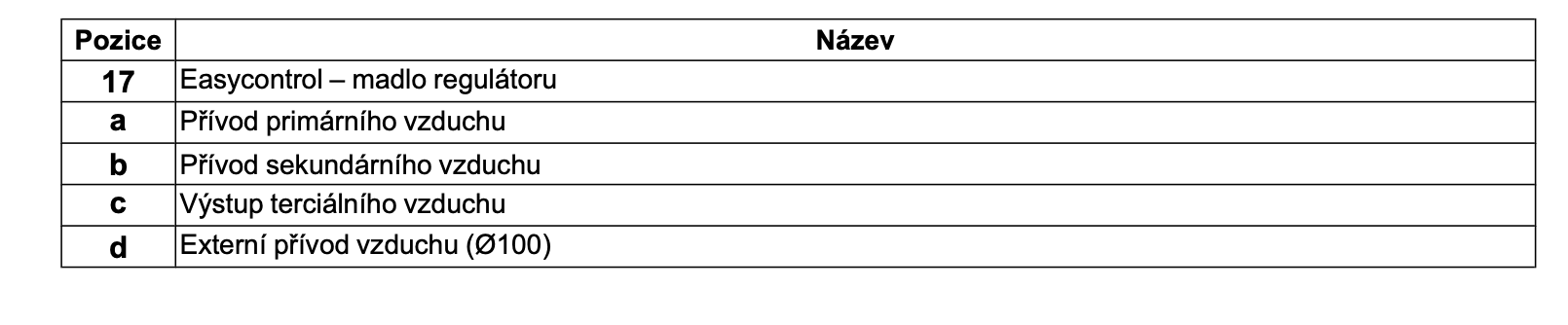 - EASY CONTROL (komfortní ovládání přívodu vzduchu jedním regulátorem)