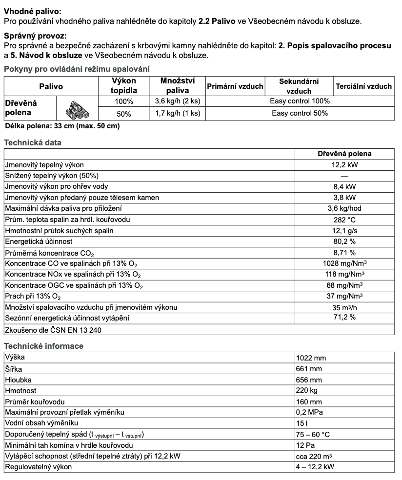 | Jmenovitý výkon kamen: | 4-12,2 kW |